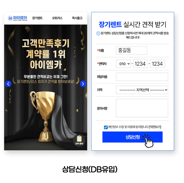 - 개인정보 수집항목 : 이름, 연락처, IP등을 포함한 고객이 입력한 정보