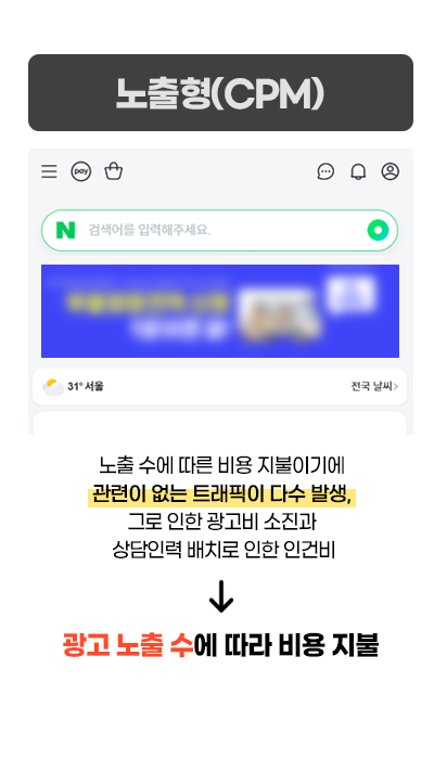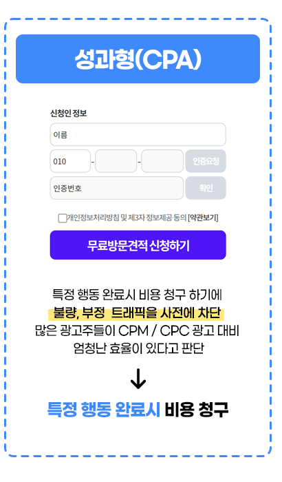 광고주와 협의된 목표(회원가입, 신청 등)가 실제로 달성될 때만 과금되는 성과형 CPA 방식을 채택하고 있어,