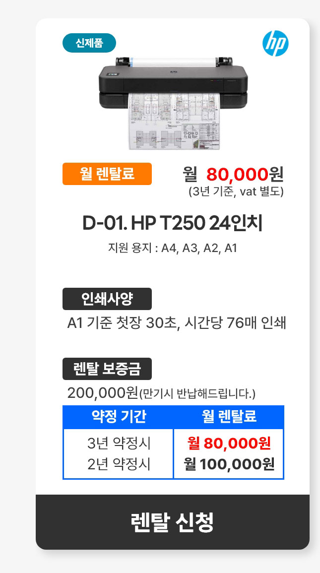 D-01. HP 디자인젯 T250 24인치
