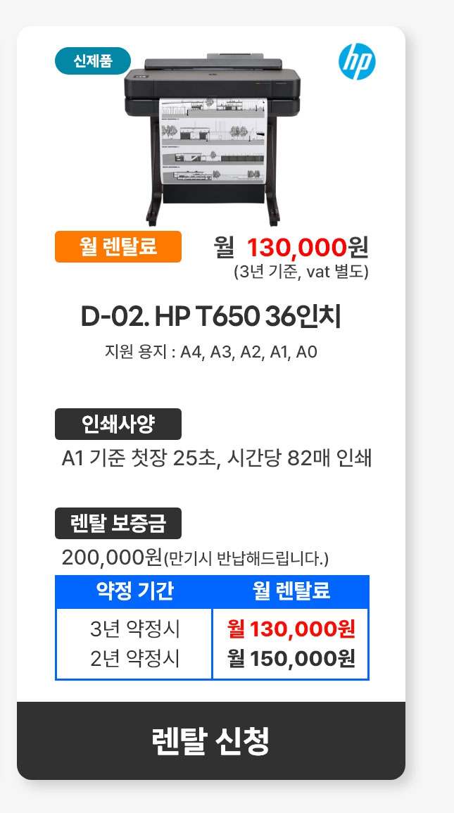 D-02. HP 디자인젯 T650 36인치