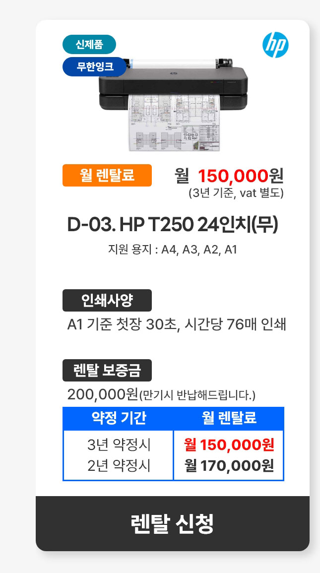 D-03. HP 디자인젯 T250 24인치(무)