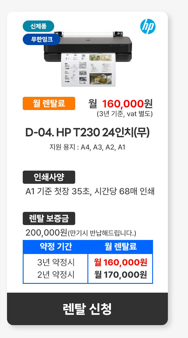 D-04. HP 디자인젯 T230 24인치(무)