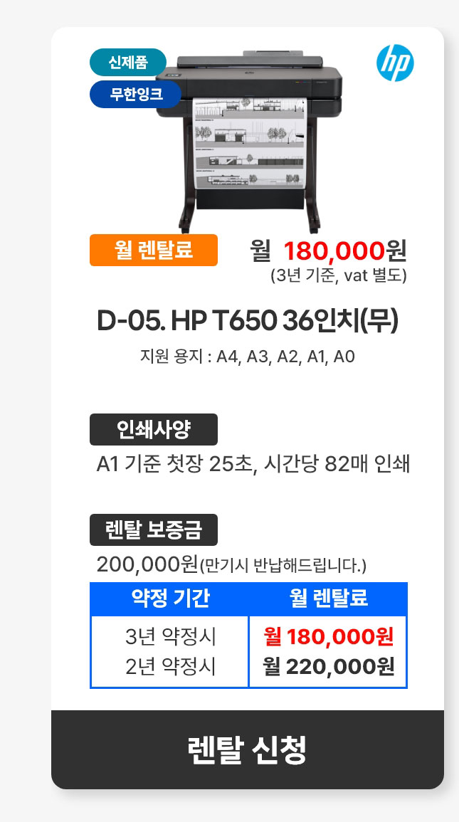 D-05. HP 디자인젯 T650 36인치(무)