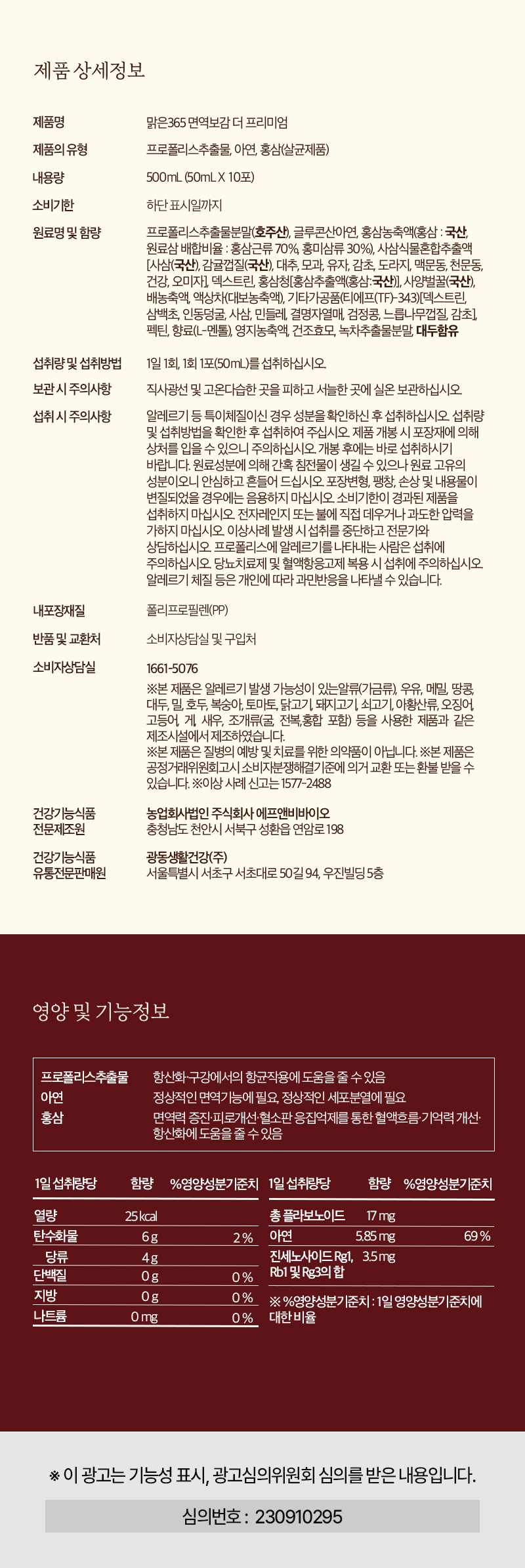 제품명 : 맑은365 면역보감 더 프리미엄|판매대리점 : 제이피솔루션