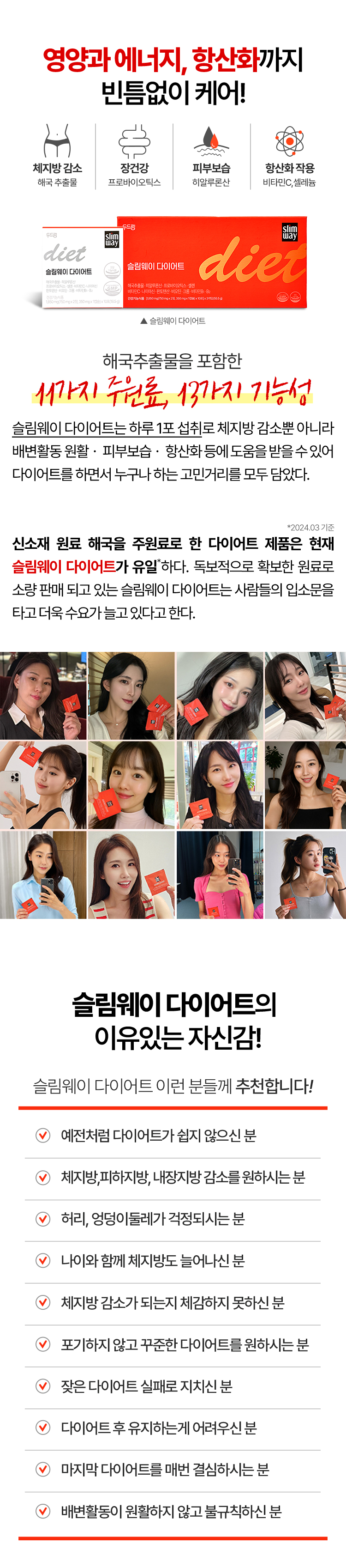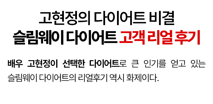 빠지지 않는 체지방으로 고민이 많은 분들은 슬림웨이 다이어트로 건강한 다이어트를 시작해보기를 바란다. 지금 슬림웨이는 선착순 특가 이벤트를 진행하고 있다.