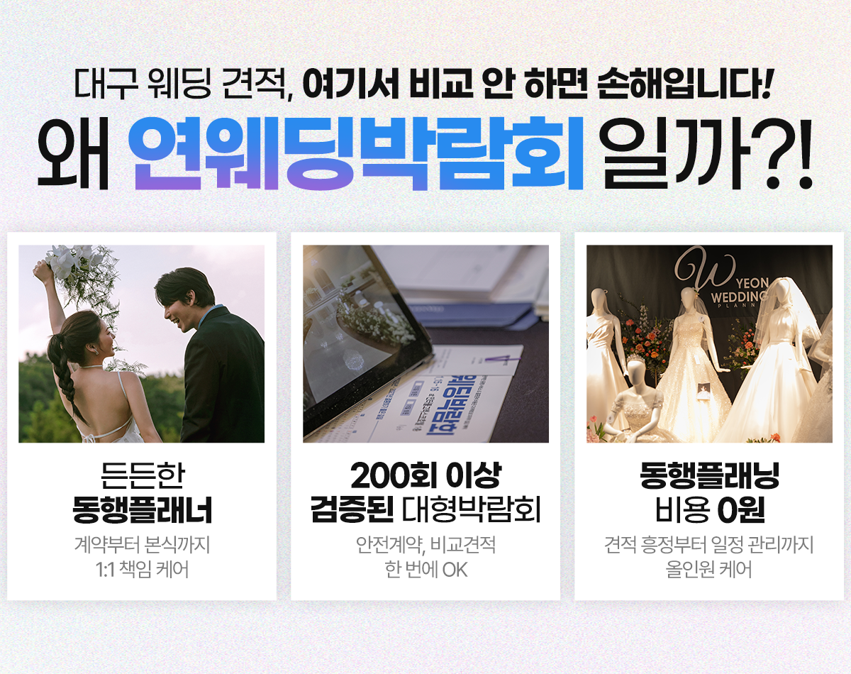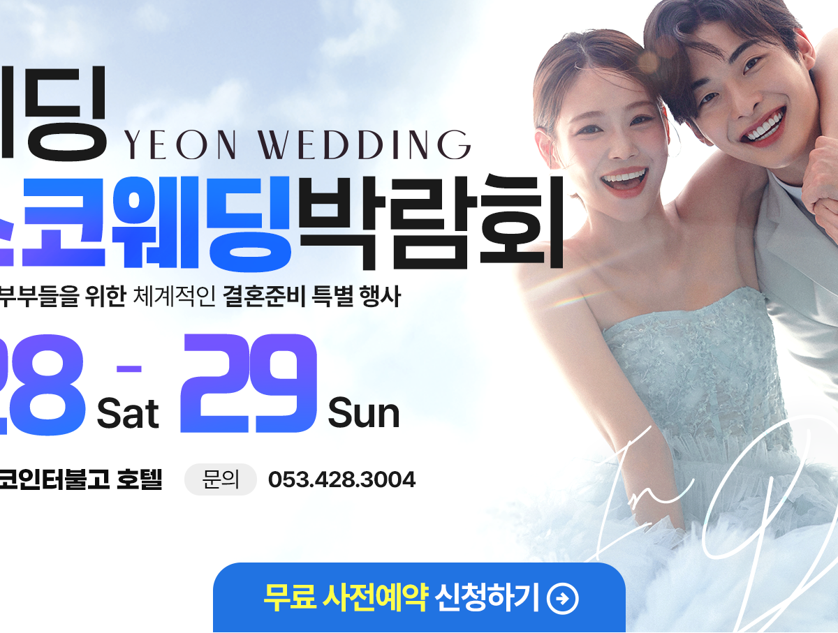 (주)연웨딩갤러리 전화문의: 053-428-3004 주소: 대구중구 명덕로65길 32 사업자등록번호 : 707-86-02985 E-mail: 4283233@naver.com COPYRIGHT(C)2019 연웨딩갤러리 ALL RIGHT RESERVED.