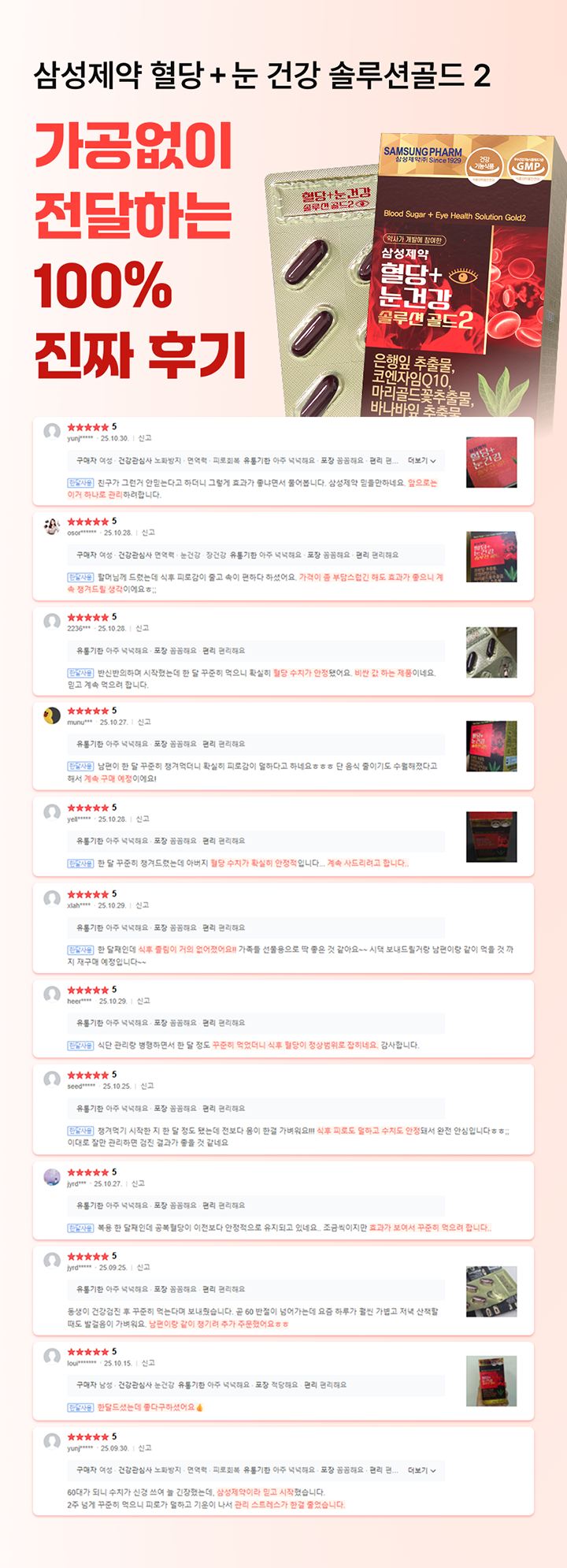 - 개인정보 수집주체 : 삼성제약 혈당+눈건강 솔루션 골드