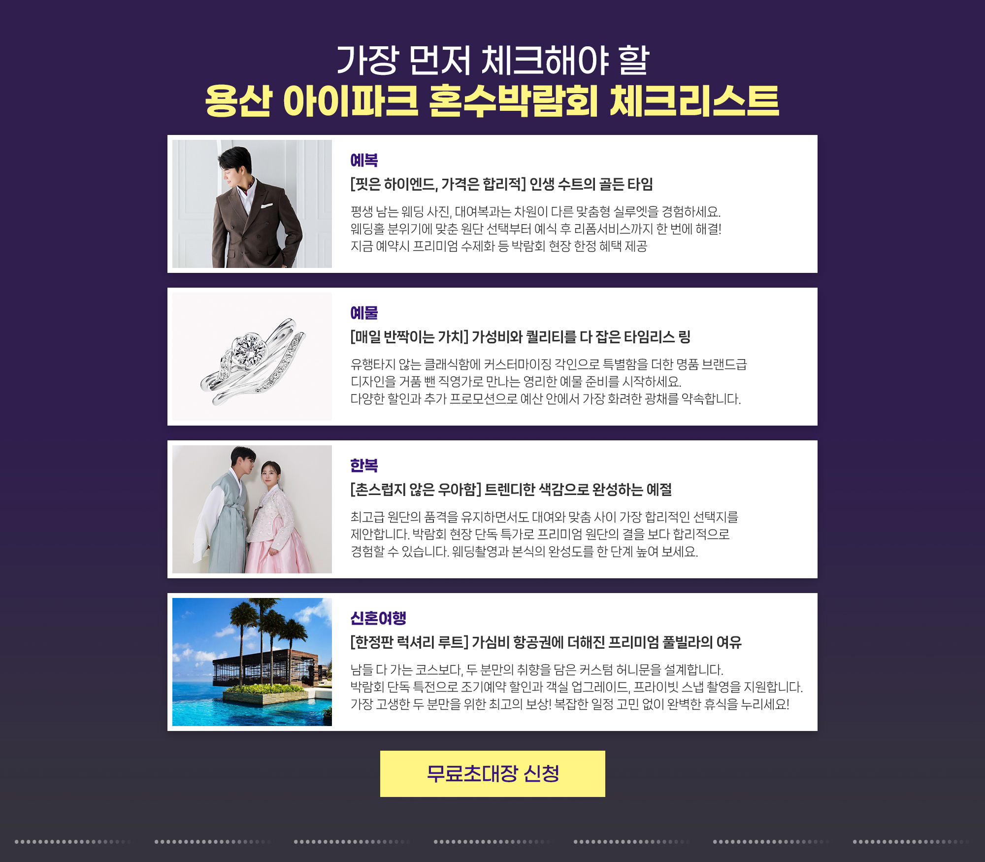 플랜온 웨딩박람회 ㅣ서울특별시 서초구 나루터로 59 4층 4582호 (대표:곽희정) | TEL : 02)6953-3898 l 사업자등록번호 : 802-86-02581 COPYRIGHT PLANONWEDDING FAIR. ALL RIGHTS RESERVED.