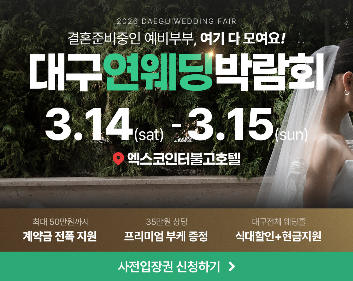 (주)연웨딩갤러리 전화문의: 053-428-3004 주소: 대구중구 명덕로65길 32 사업자등록번호 : 707-86-02985 E-mail: 4283233@naver.com COPYRIGHT(C)2019 연웨딩갤러리 ALL RIGHT RESERVED.